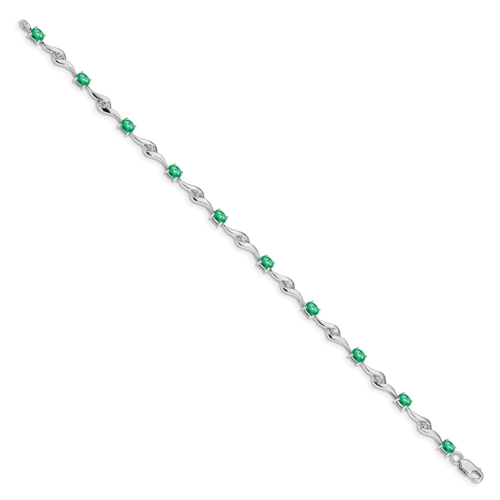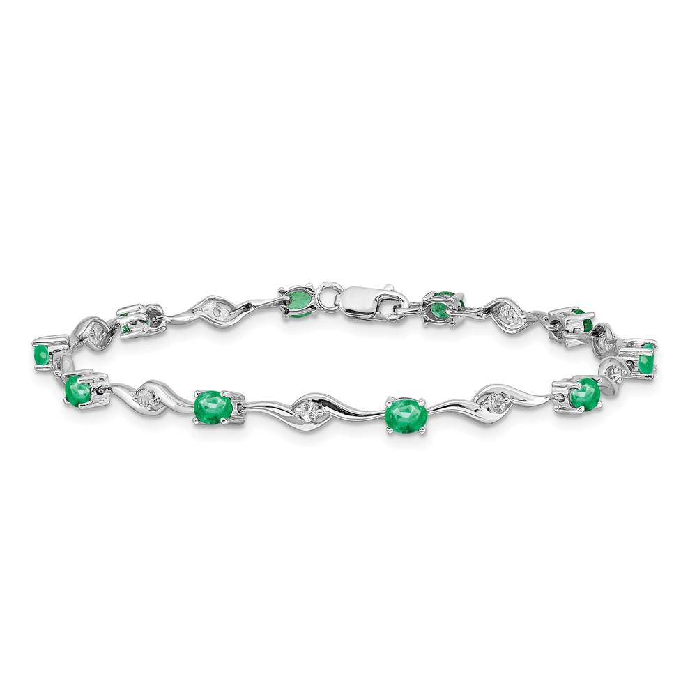 14k White Gold Complete Oval Emerald and Round White Sapphire Curved Link 7 inch Bracelet