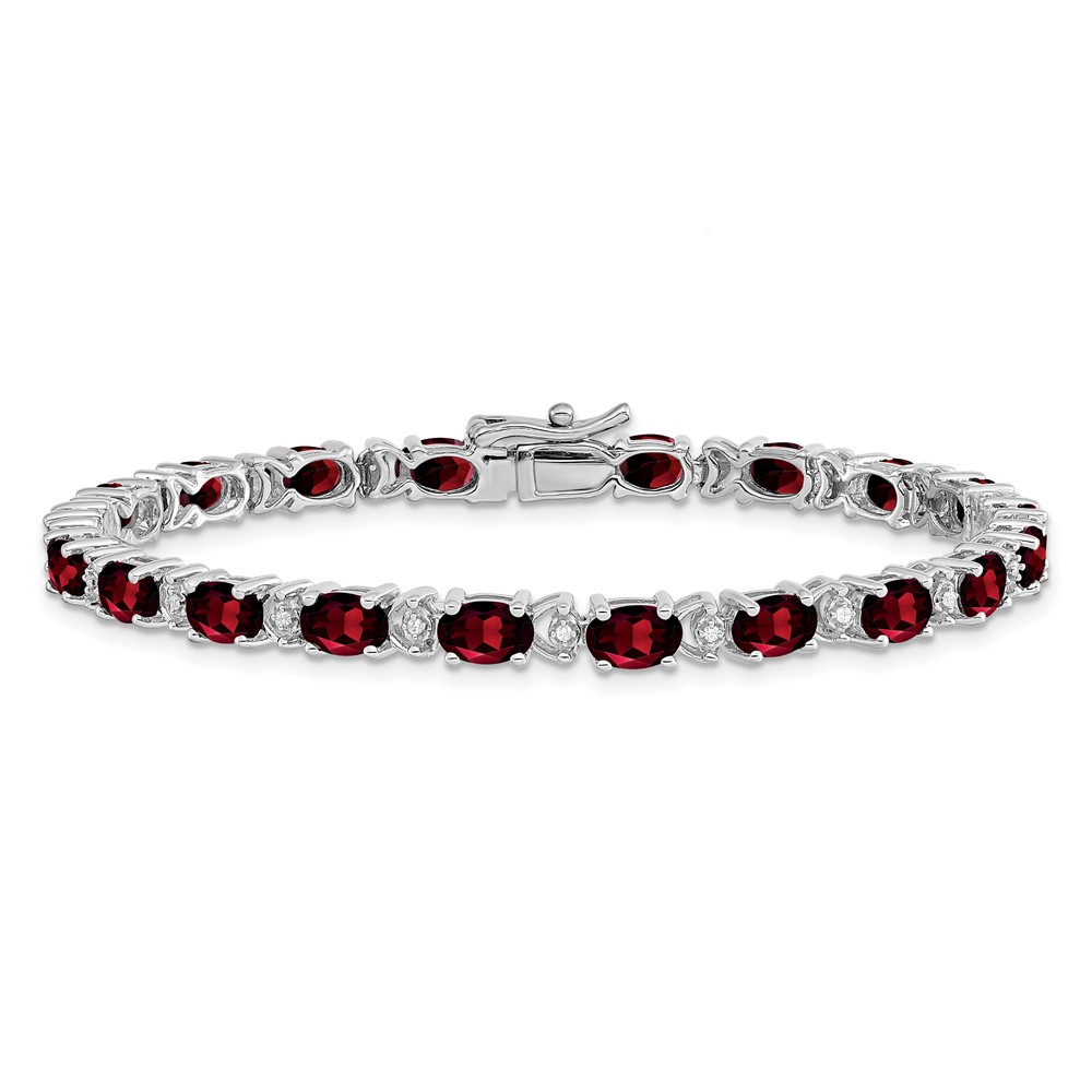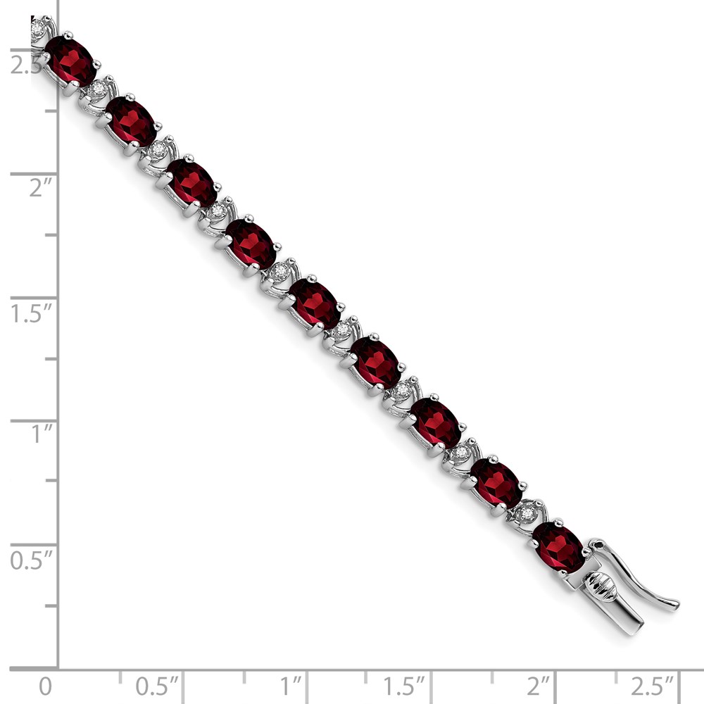 14k White Gold Complete Oval Garnet and Diamond 7 inch Bracelet