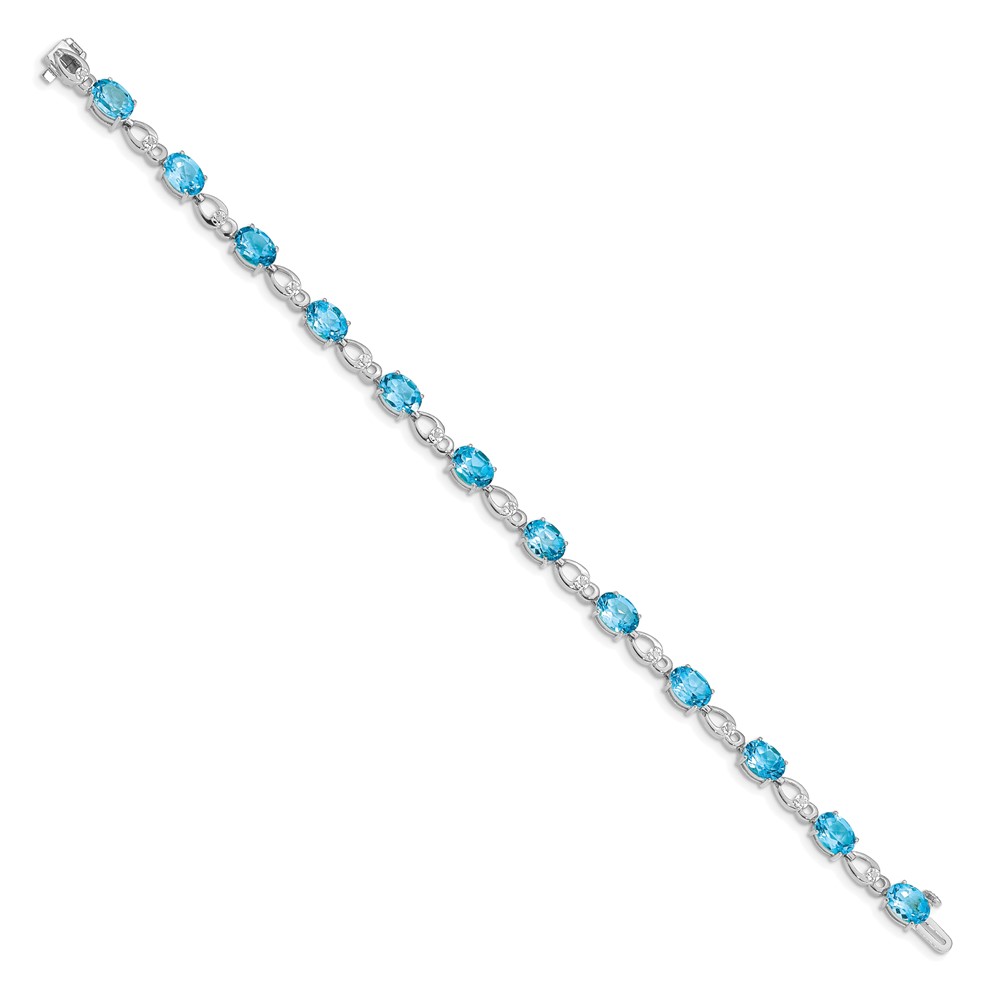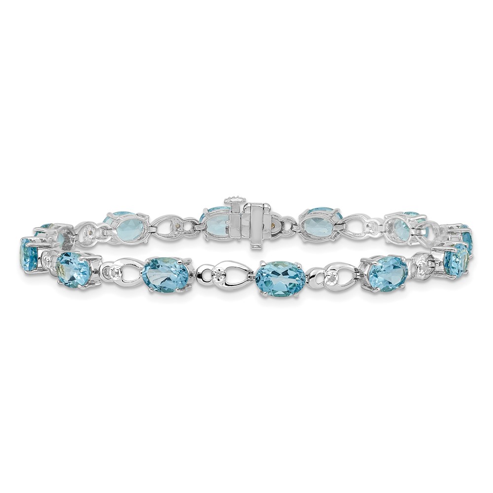 14k White Gold Complete Oval Swiss Blue Topaz and Diamond Fancy Link 7 inch Bracelet