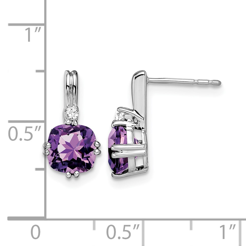 14k White Gold Cushion Amethyst and Diamond Earrings