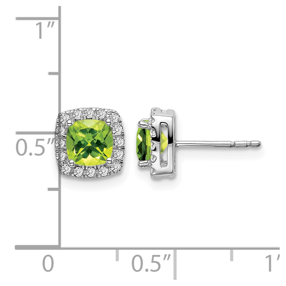 14k White Gold Cushion Peridot and Diamond Halo Earrings