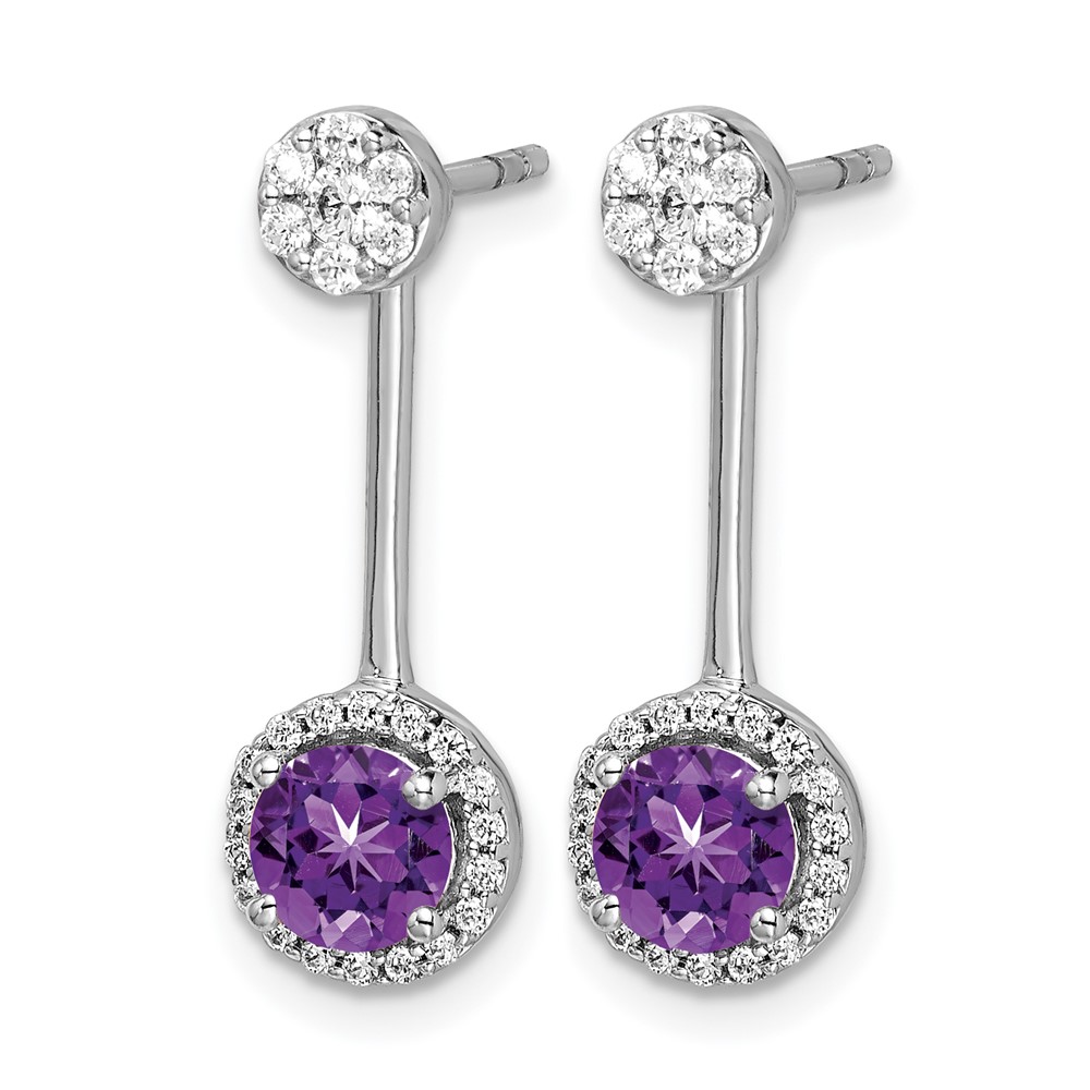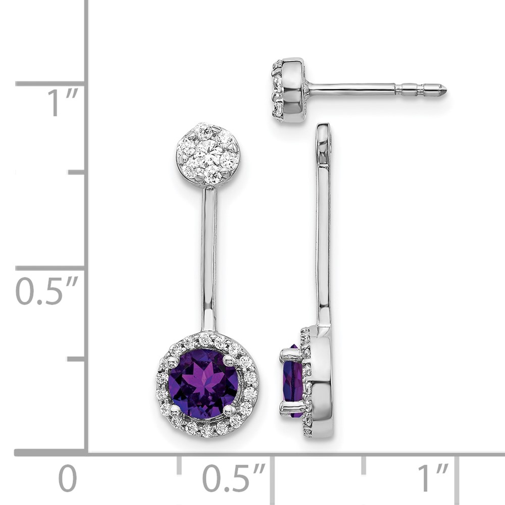 14k White Gold Diamond/Amethyst Front/Back Earrings