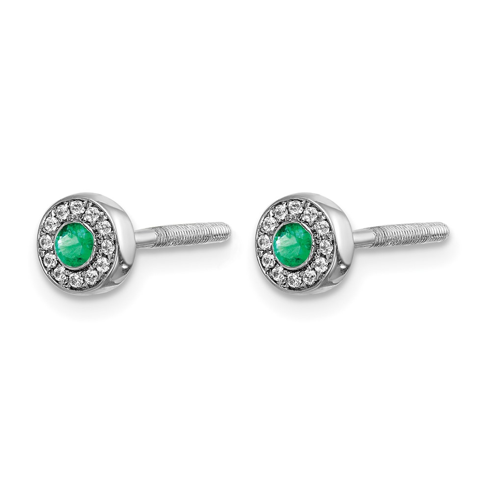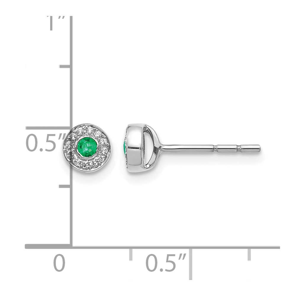 14k White Gold Diamond and 2.3mm Round Emerald Halo Post Earrings
