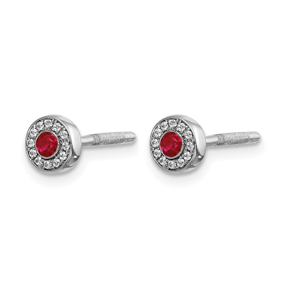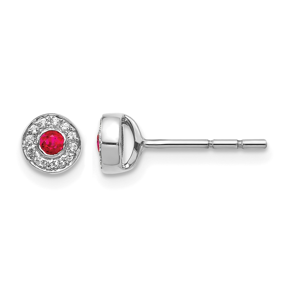 14k White Gold Diamond and 2.3mm Round Ruby Halo Post Earrings