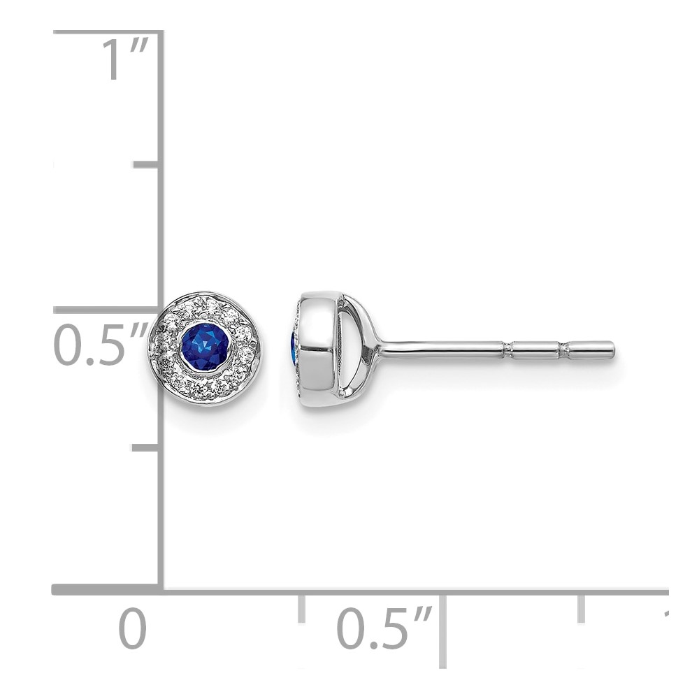 14k White Gold Diamond and 2.3mm Round Sapphire Halo Post Earrings