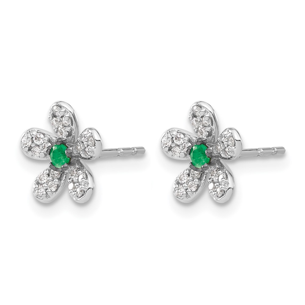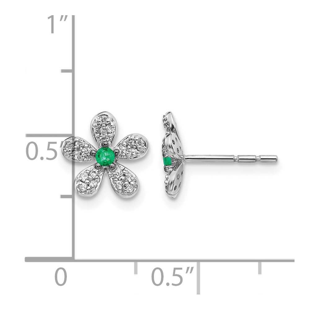 14k White Gold Diamond and Emerald Flower Post Earrings