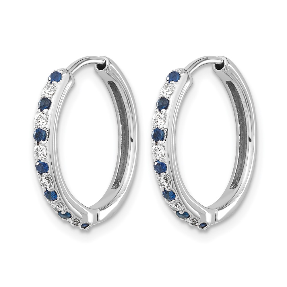 14k White Gold Diamond and Sapphire 19mm Hinged Hoop Earrings