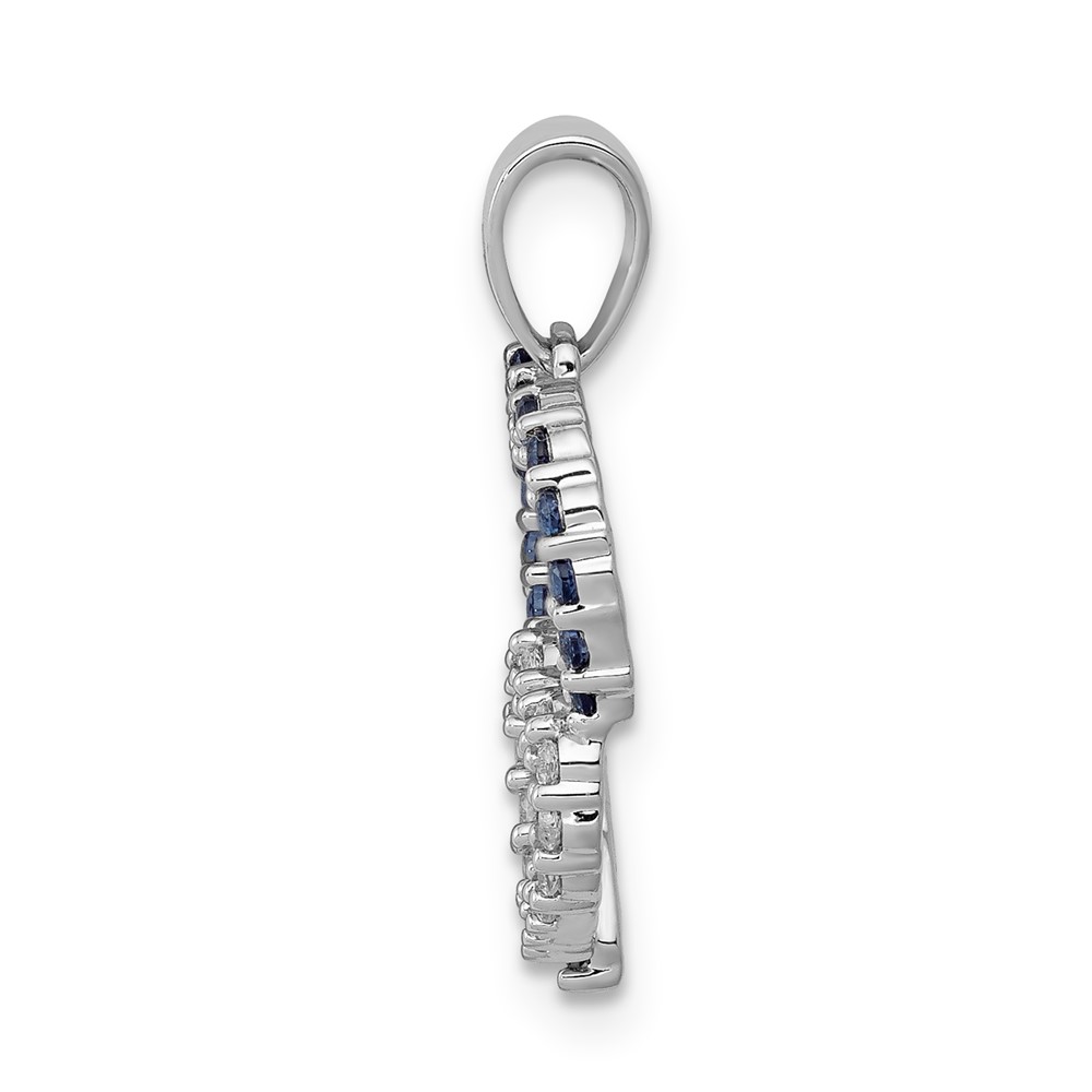 14k White Gold Diamond and Sapphire Double Heart Pendant