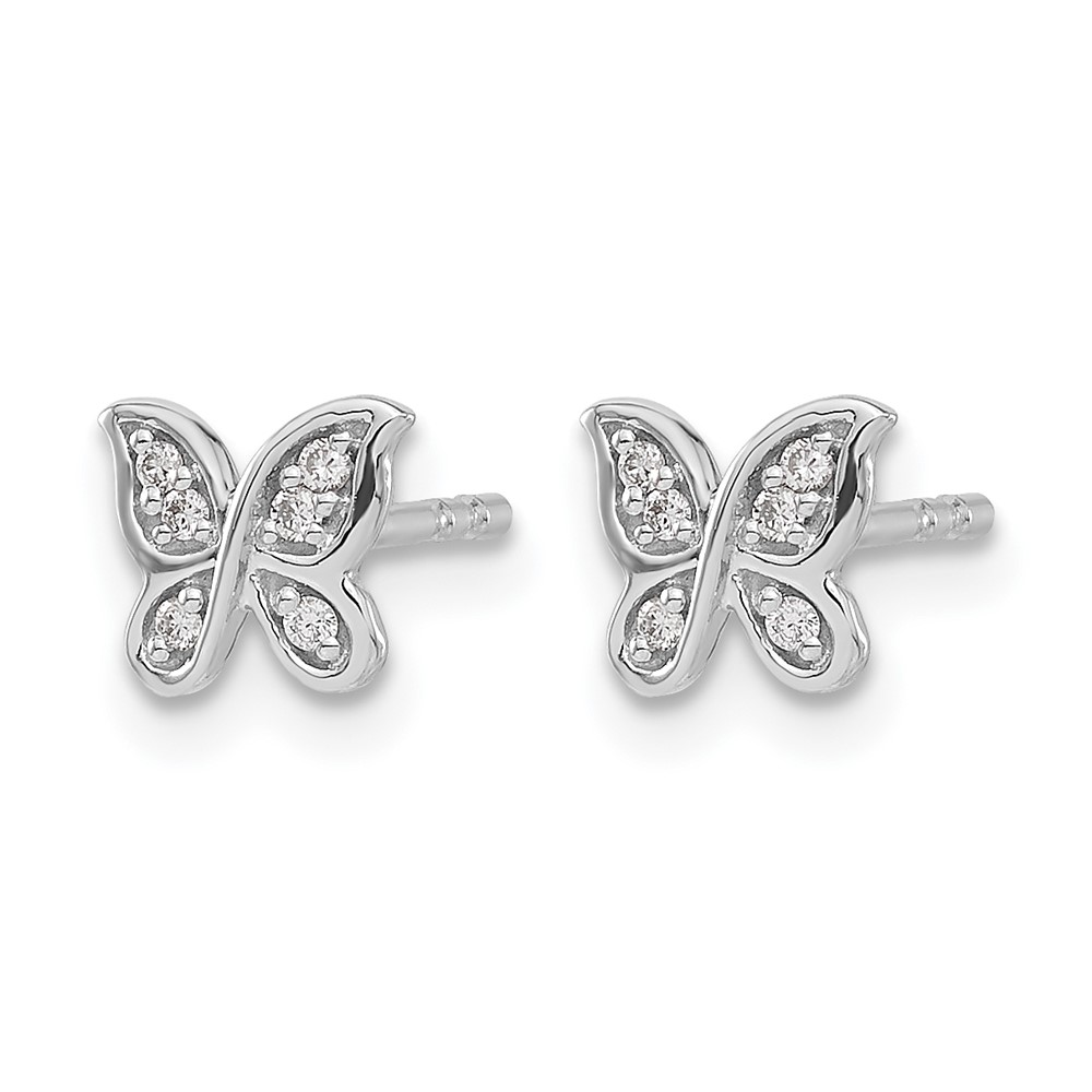 14k w/Rhodium Diamond Butterfly Post Earrings