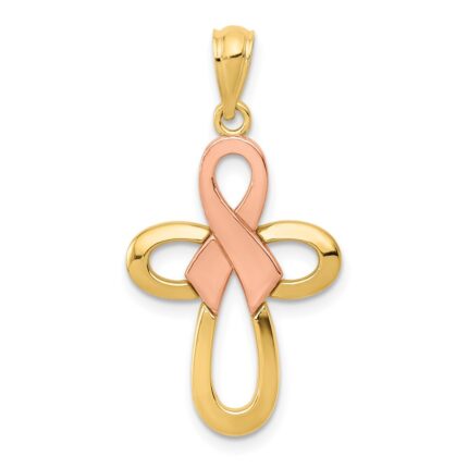 14k White Gold Diamond-cut Awareness Ribbon Pendant