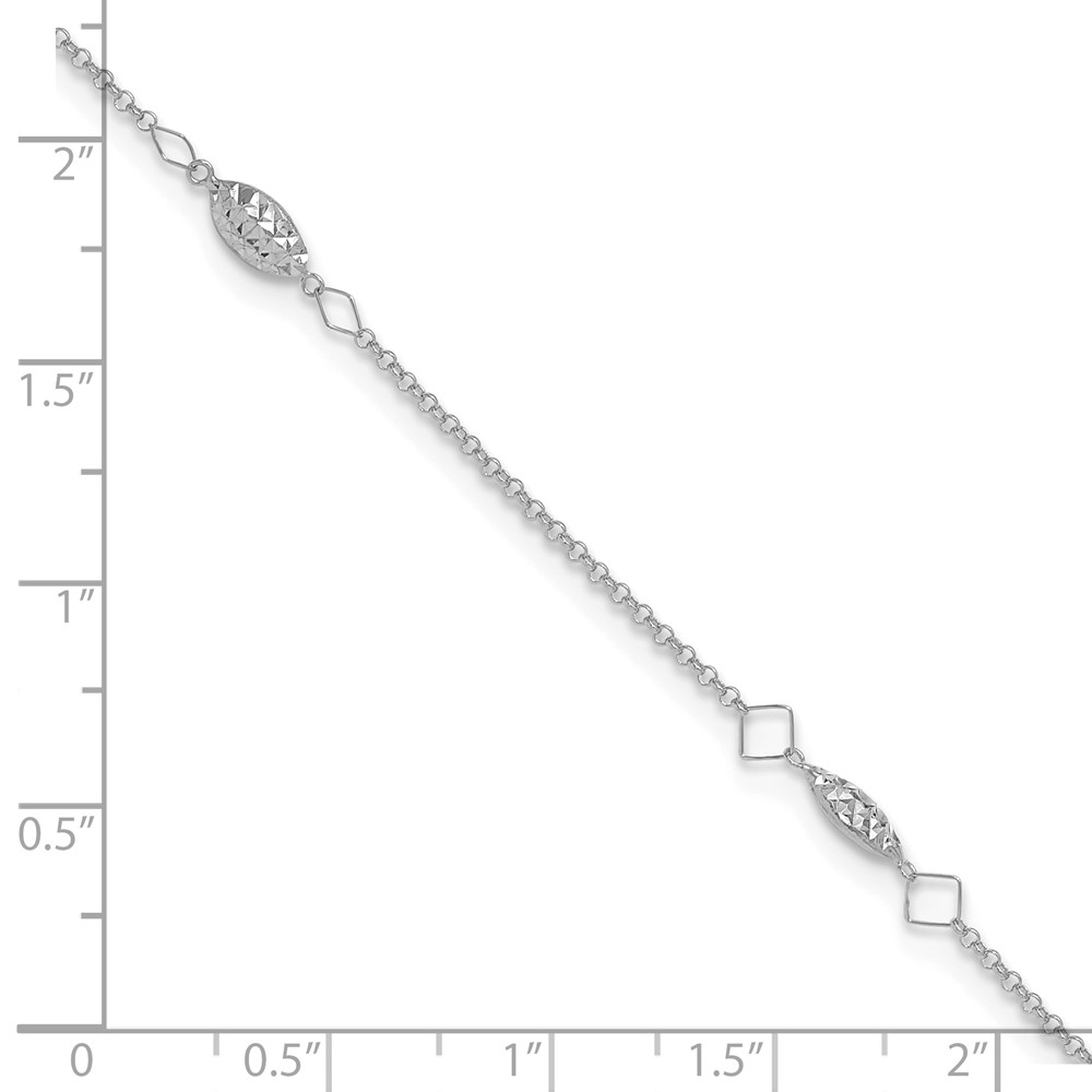 14K White Gold Diamond-cut Rice Puff Beads 4-Station Plus Extender – Total Anklet