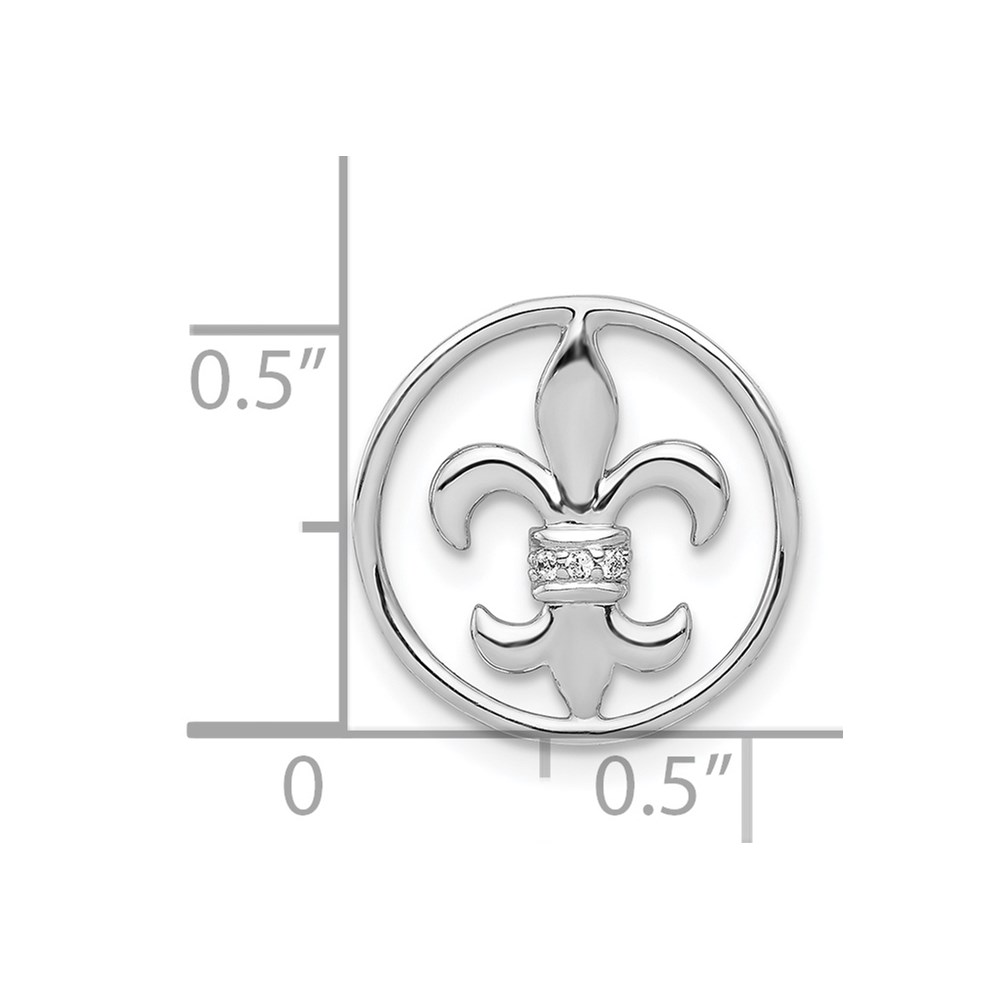 14k White Gold Diamond Fleur De Lis in Circle Chain Slide