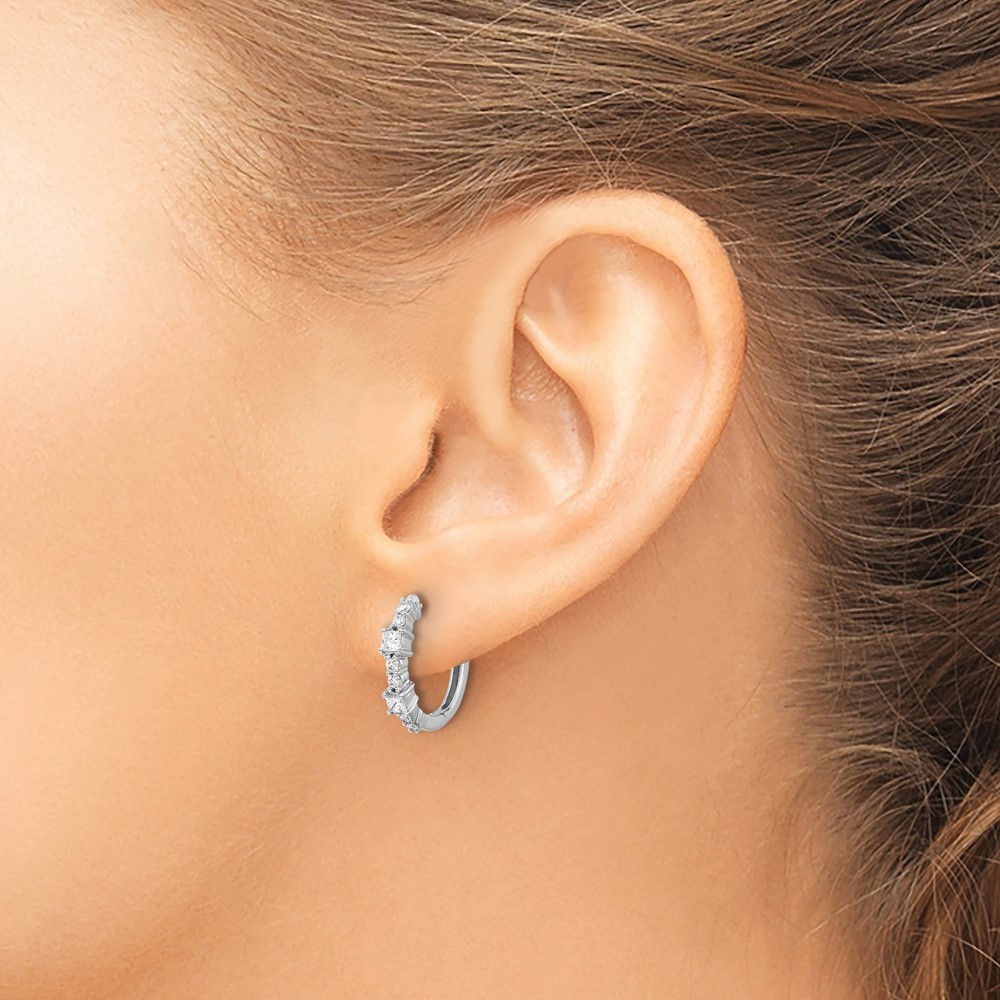 14k White Gold 2.7mm Round Ruby Cabochon and Diamond Hinged Hoop Earrings