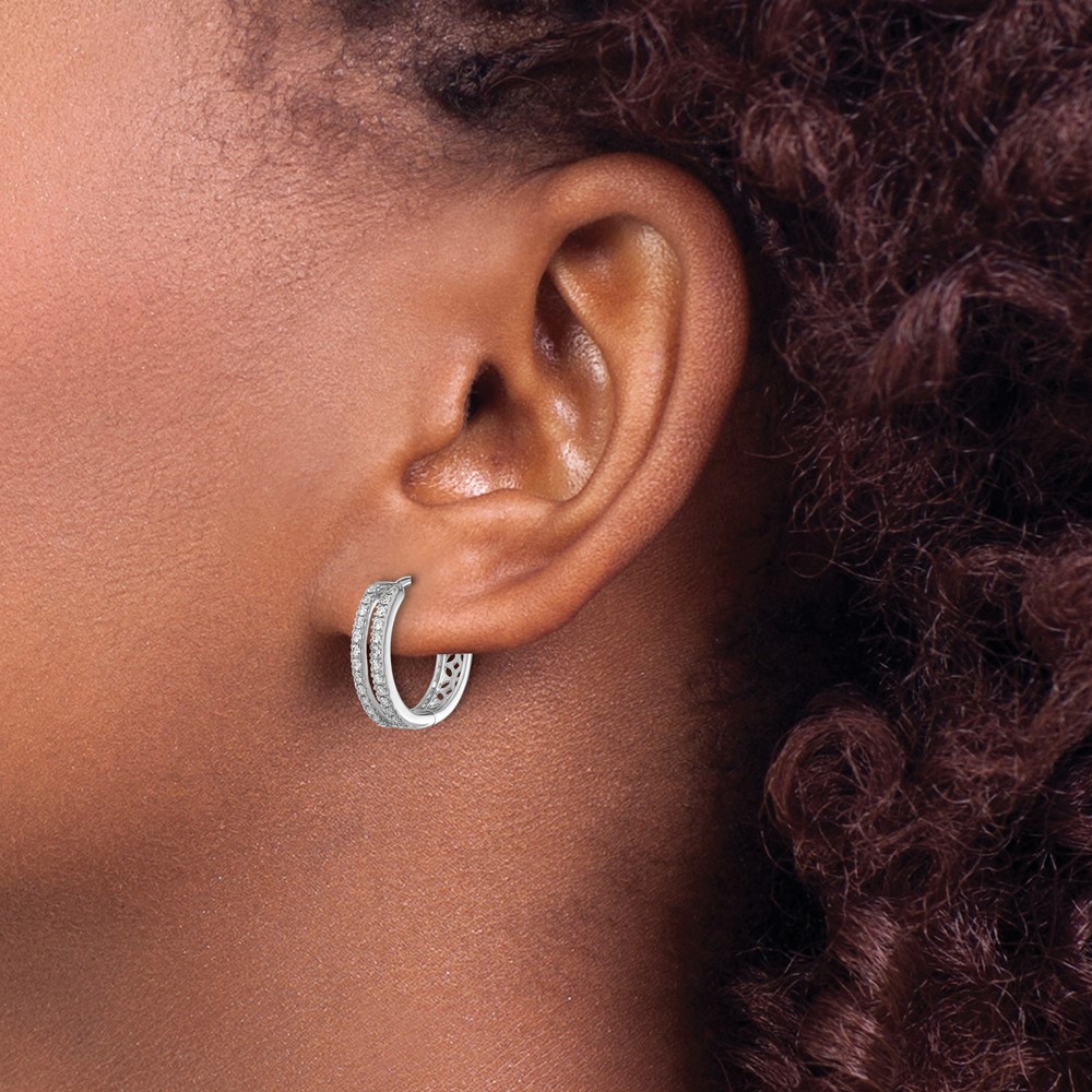 14k White Gold Diamond Hinged Round Hoop Earrings