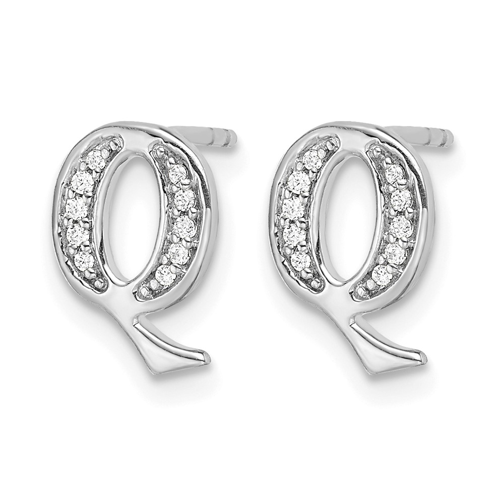 14k White Gold Diamond Initial Q Post Earrings
