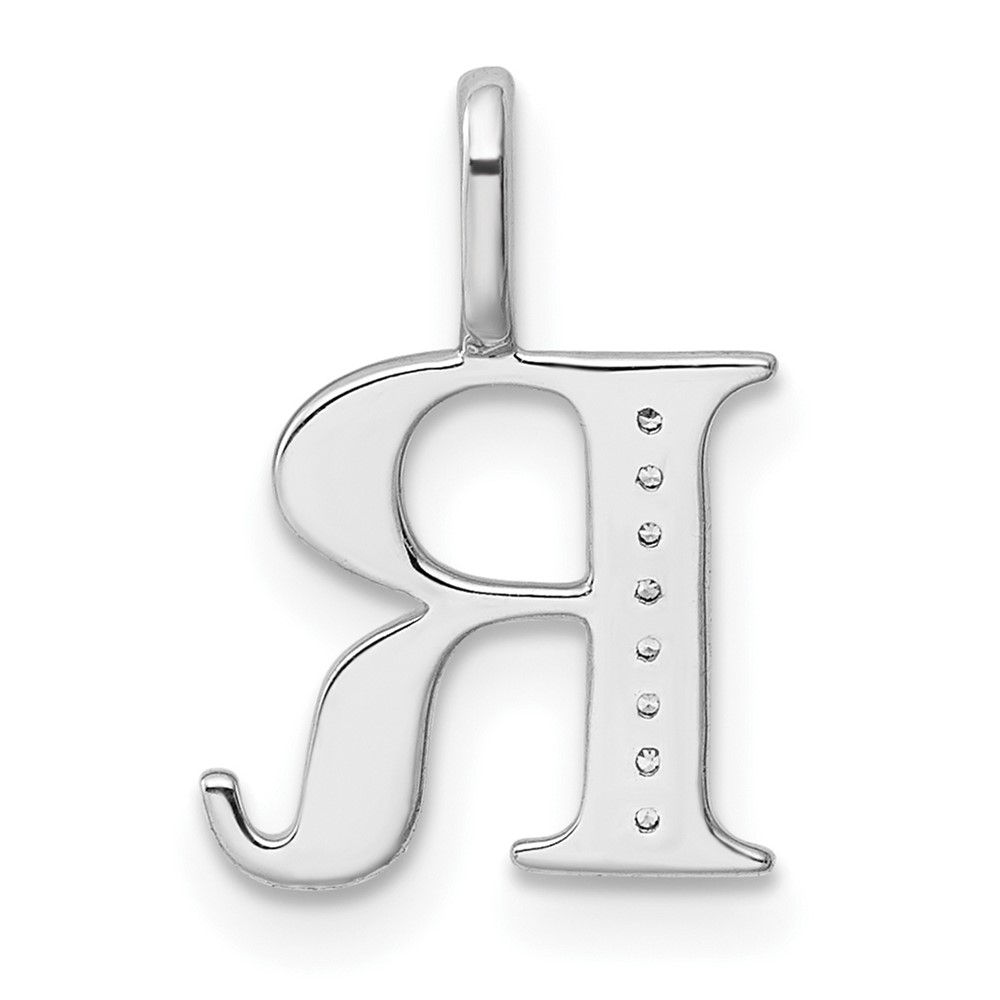14K White Gold Diamond Letter R Initial Pendant
