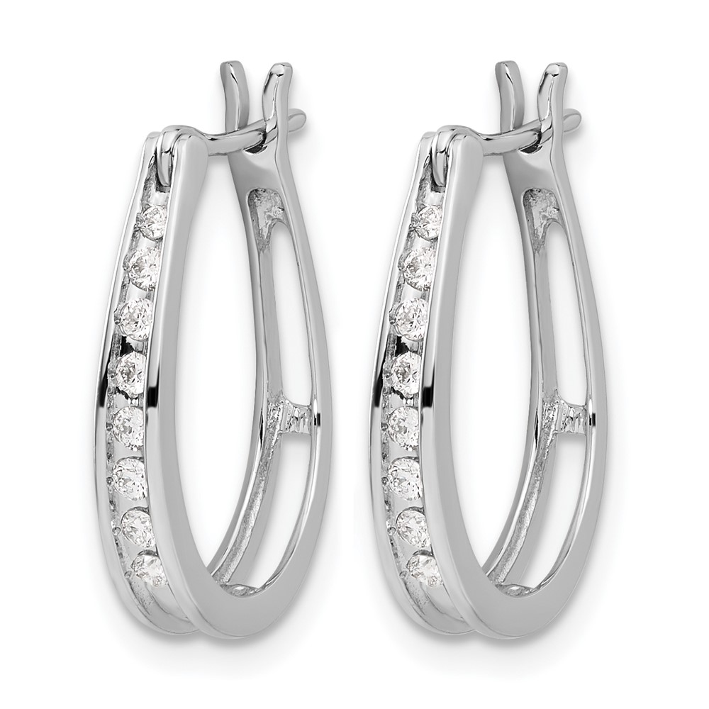 14k White Gold Diamond Oval Hinged Hoop Earrings