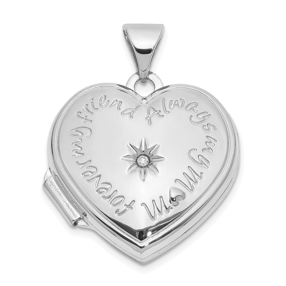 14K White Gold Diamond Star FOREVER MY FRIEND ALWAYS MY MOM 18mm Heart Locket