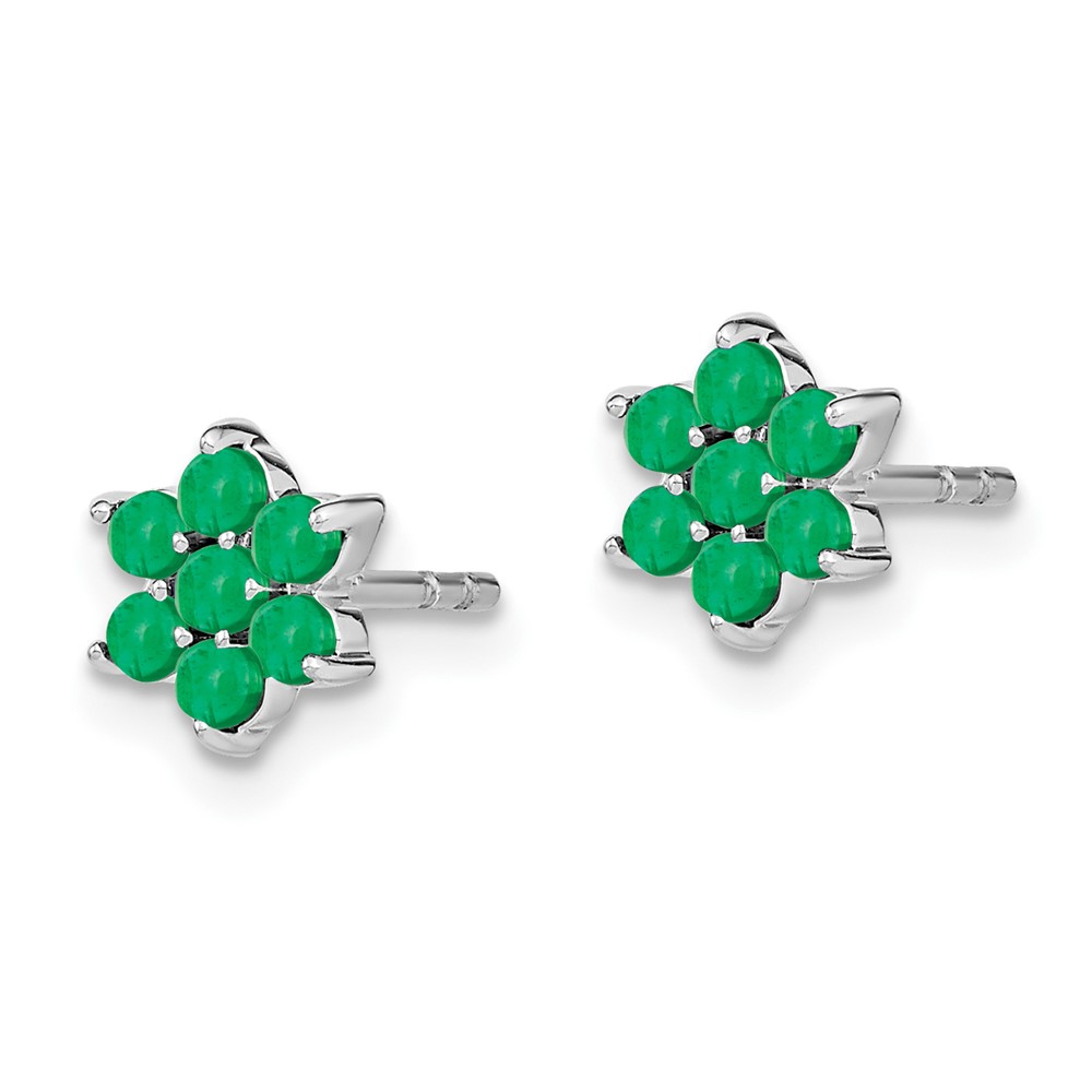14k White Gold Emerald Cabochon Floral Post Earrings