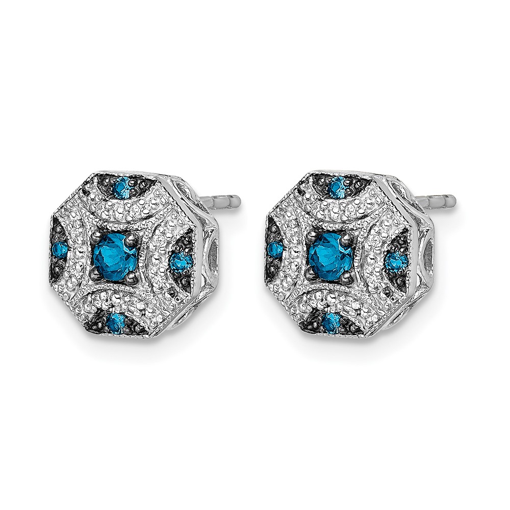 14k White Gold Fancy 1/4 carat White and Blue Diamond Octagon Post Earrings