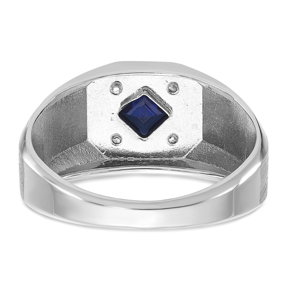 14k White Gold IBGoodman Men’s Created Sapphire and 1/20 carat Diamond Satin Complete Ring
