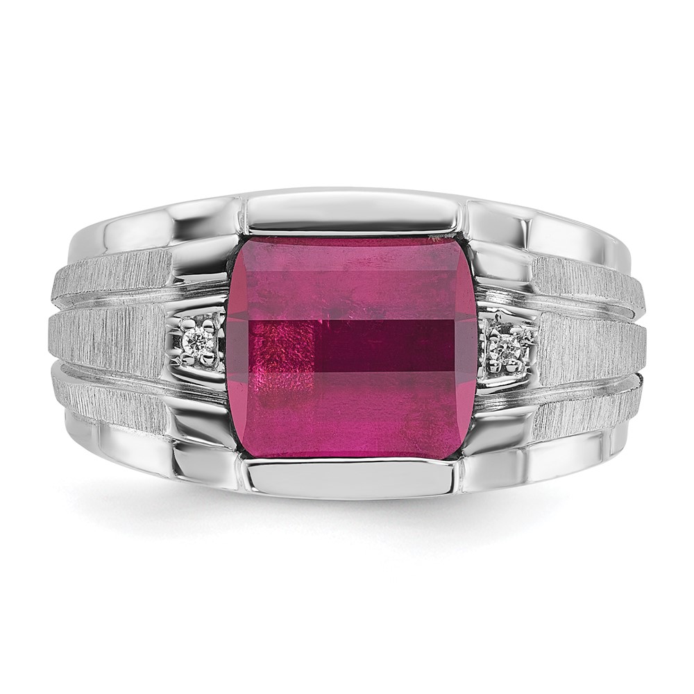 14k White Gold IBGoodman Men's Satin Created Ruby and Diamond Complete Ring