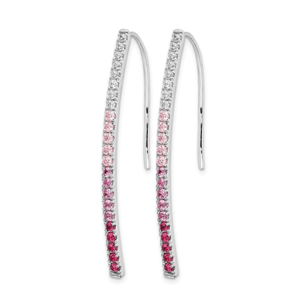14k White Gold Ombre Pink Sapphire and Diamond Drop Wire Earrings