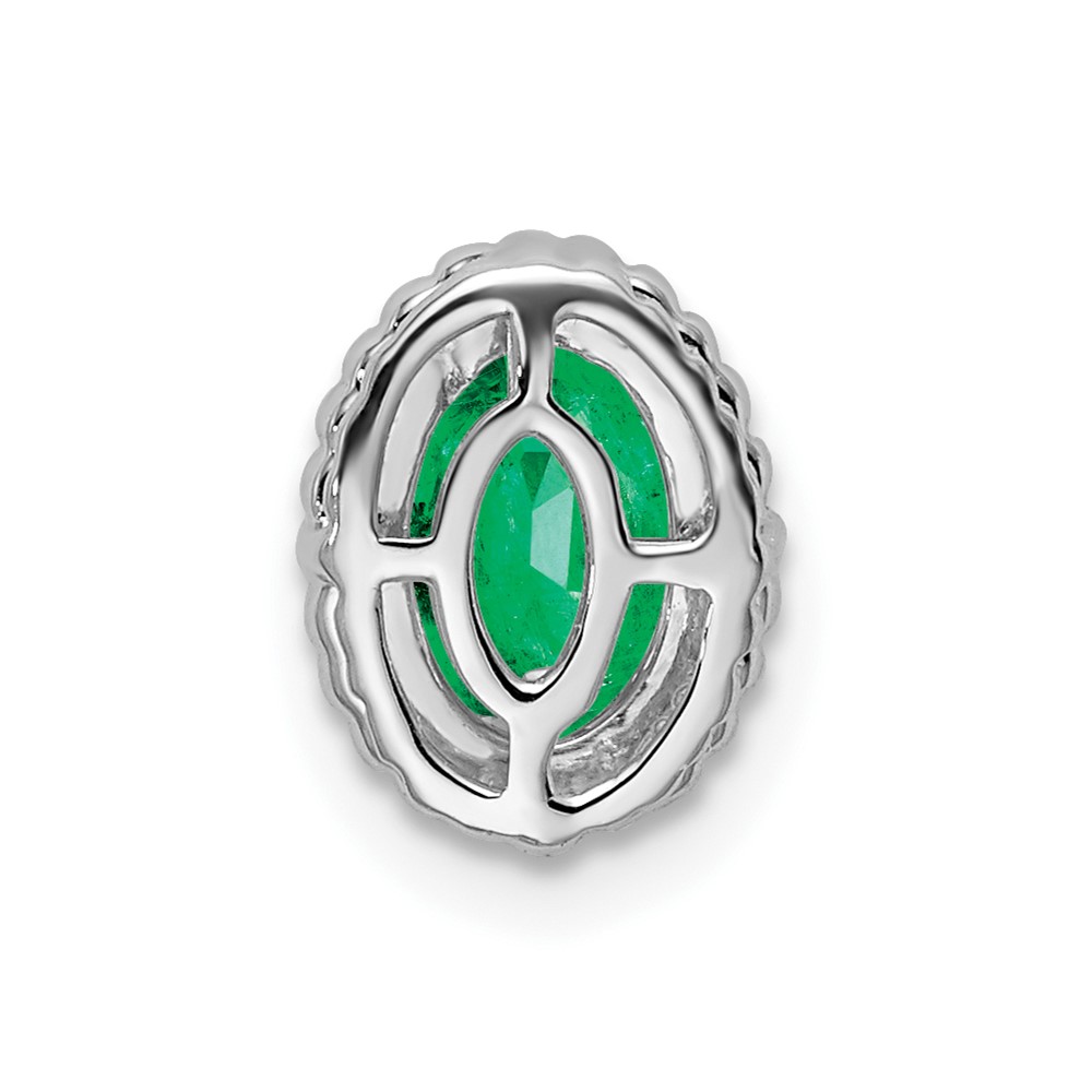 14k White Gold Oval Emerald Beaded Edge Chain Slide