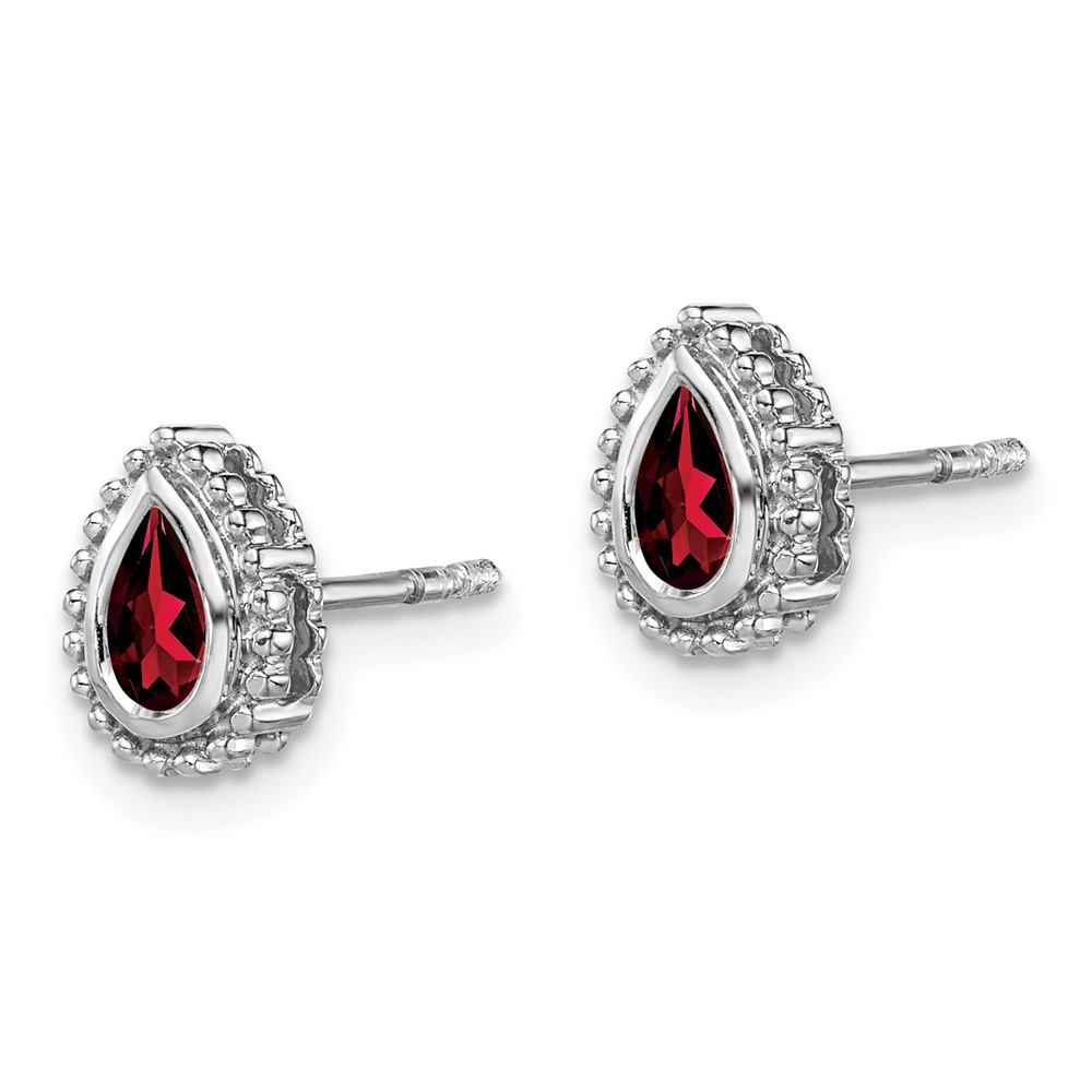 14k White Gold Pear Garnet Post Earrings