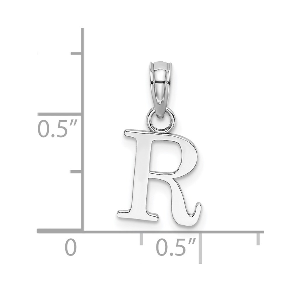 14K White Gold Polished Block Letter R Initial Pendant