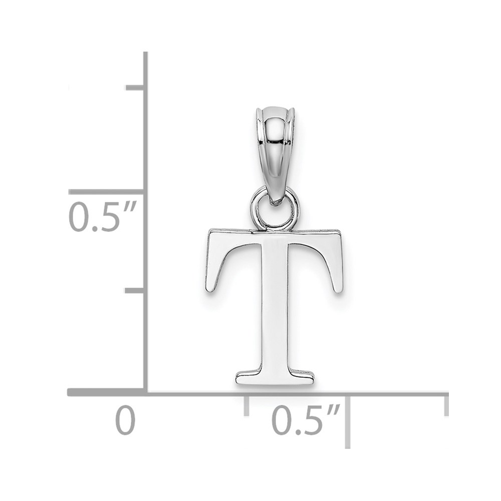 14K White Gold Polished Block Letter T Initial Pendant
