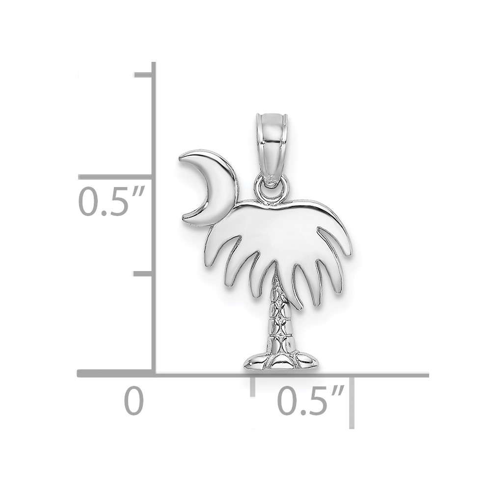 14K White Gold Polished Charleston Palm Tree with Moon Charm