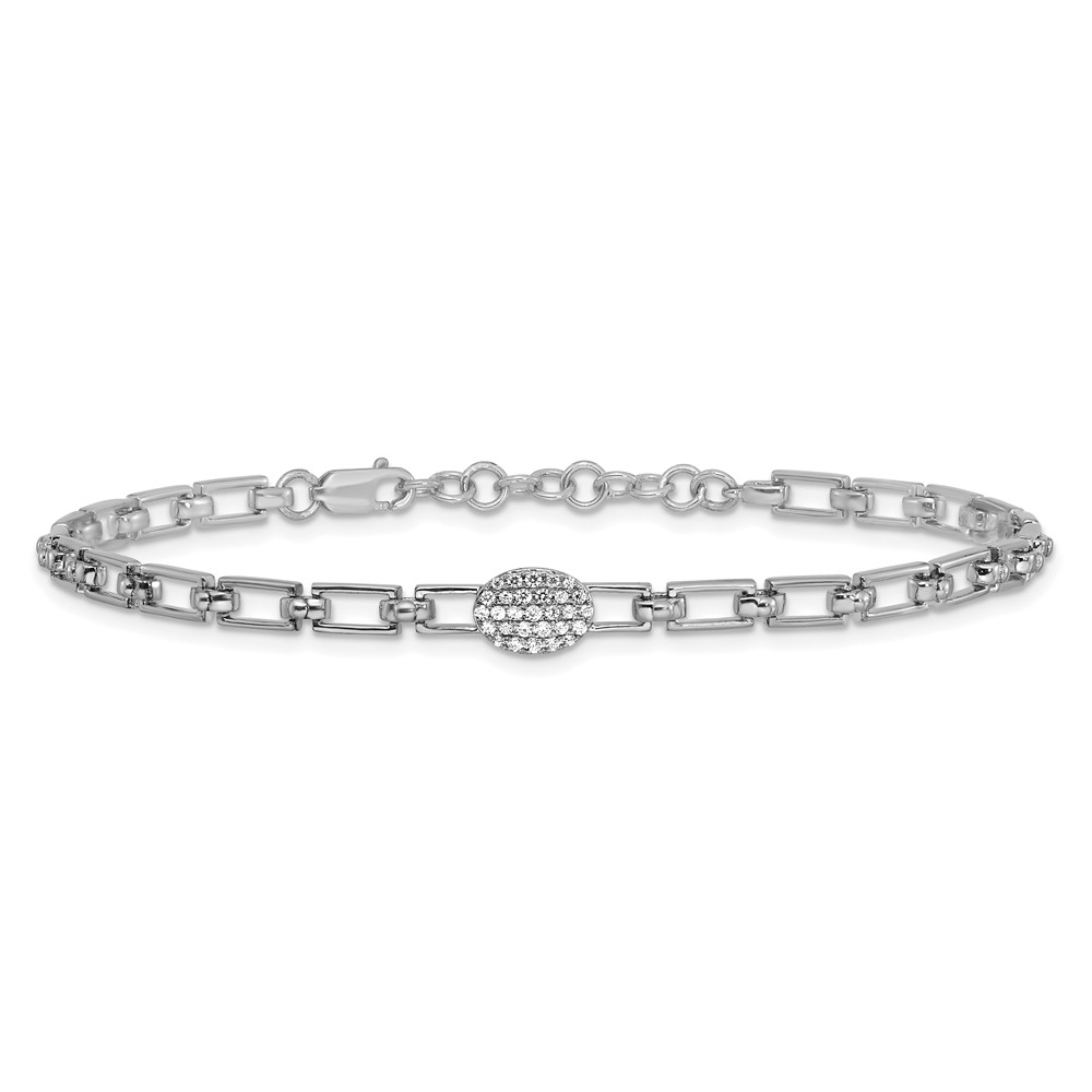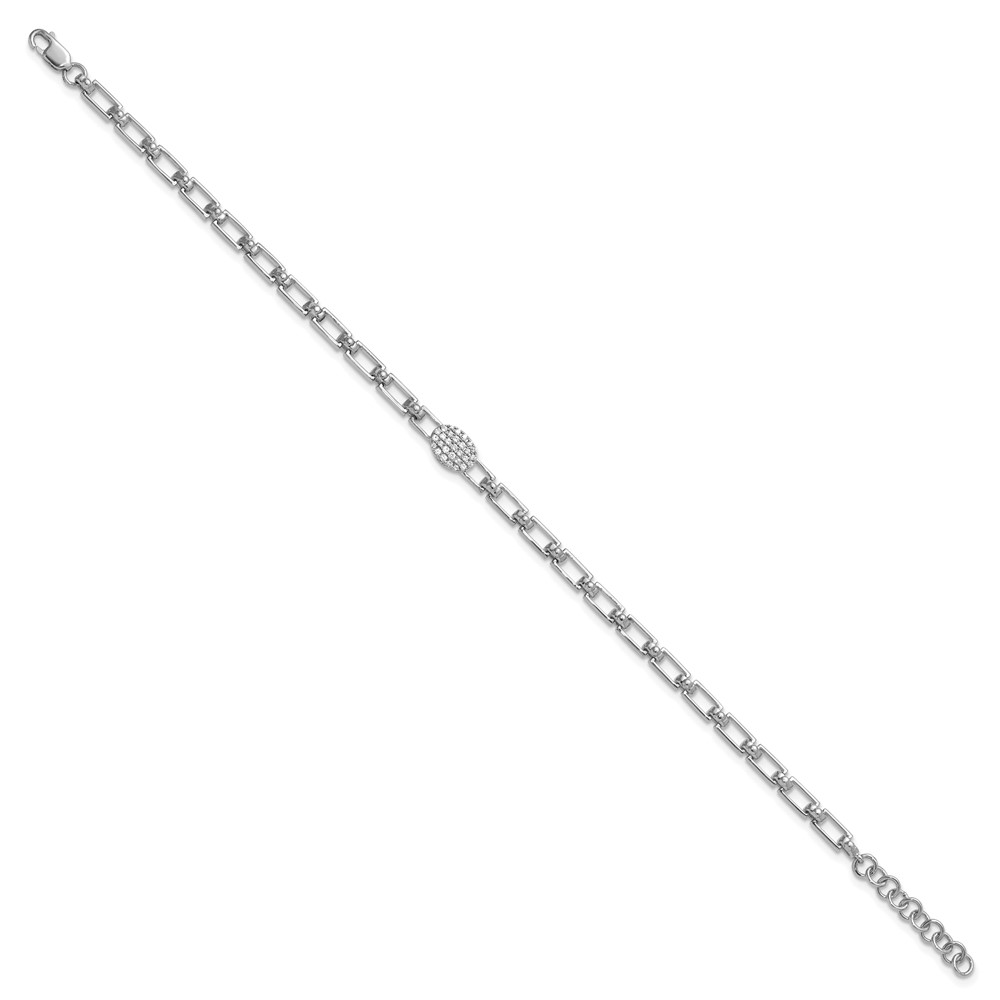 14K White Gold Polished Complete 1/8 carat Diamond Oval Cluster Fancy Link 7 inch Bracelet with 1 inch Extender