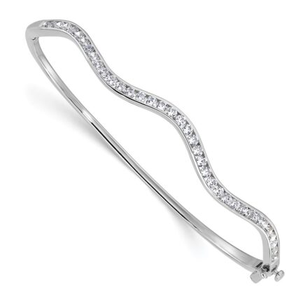 14k White Gold 1 1/4 carat Lab Grown Diamond VS/SI+ G+ Wavy Complete Bangle Bracelet