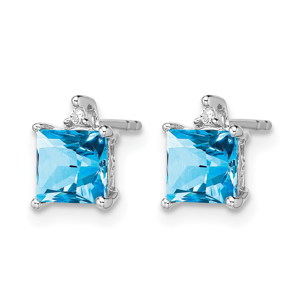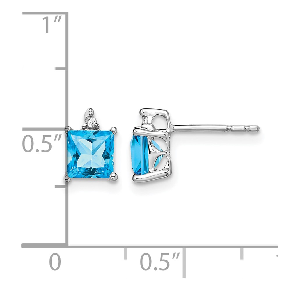14k White Gold Princess Blue Topaz and Diamond Earrings