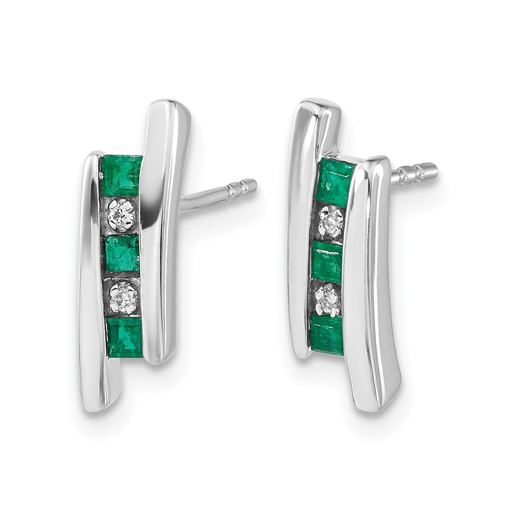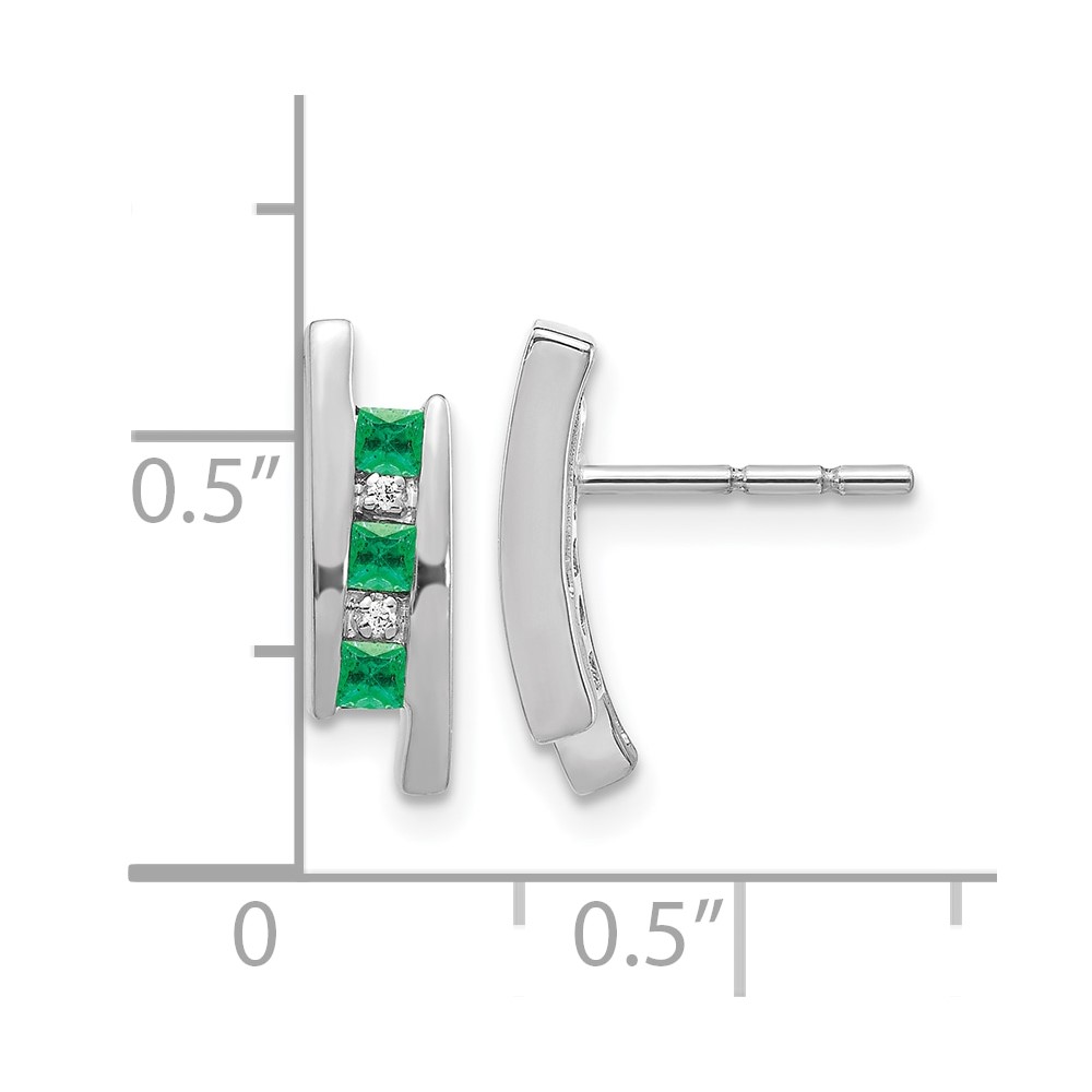 14k White Gold Princess Emerald and Diamond Post Earrings