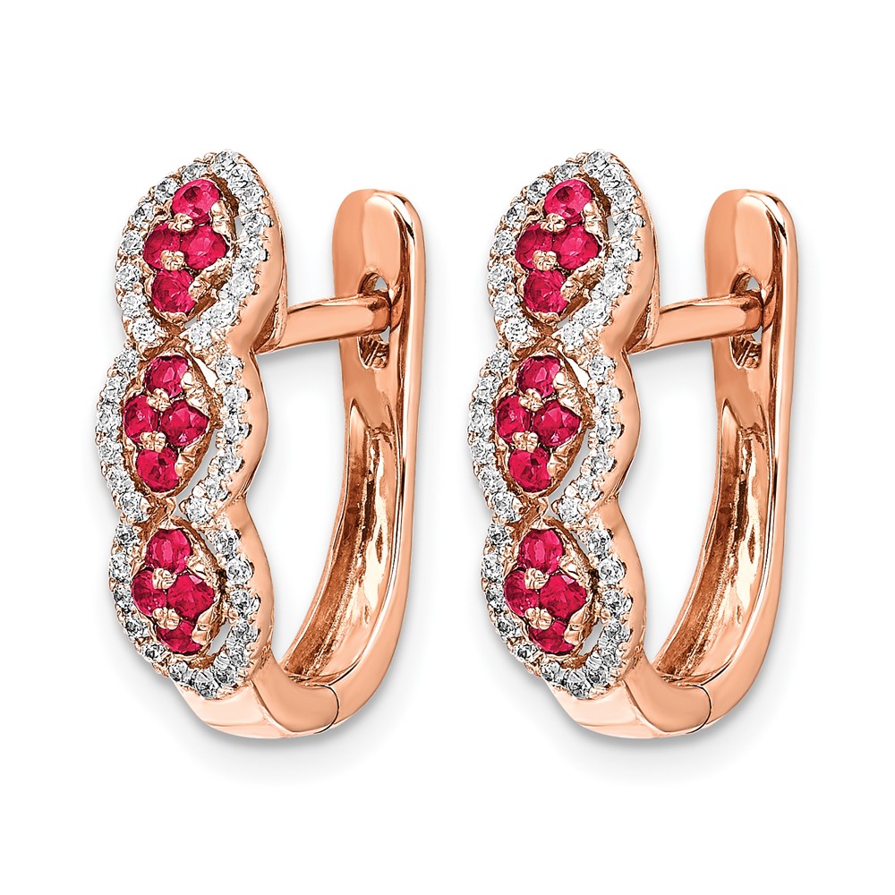 14k White Gold Ruby Cluster and Diamond Hinged Hoop Earrings