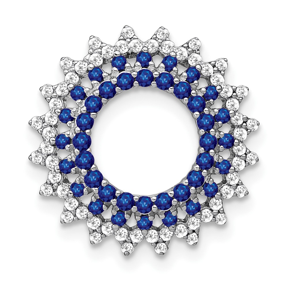 14k White Gold Sapphire and Diamond Sunburst Chain Slide