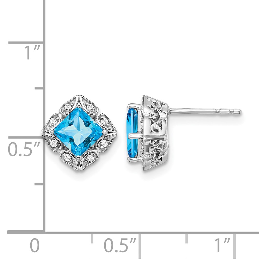 14k White Gold Square Blue Topaz and Diamond Earrings