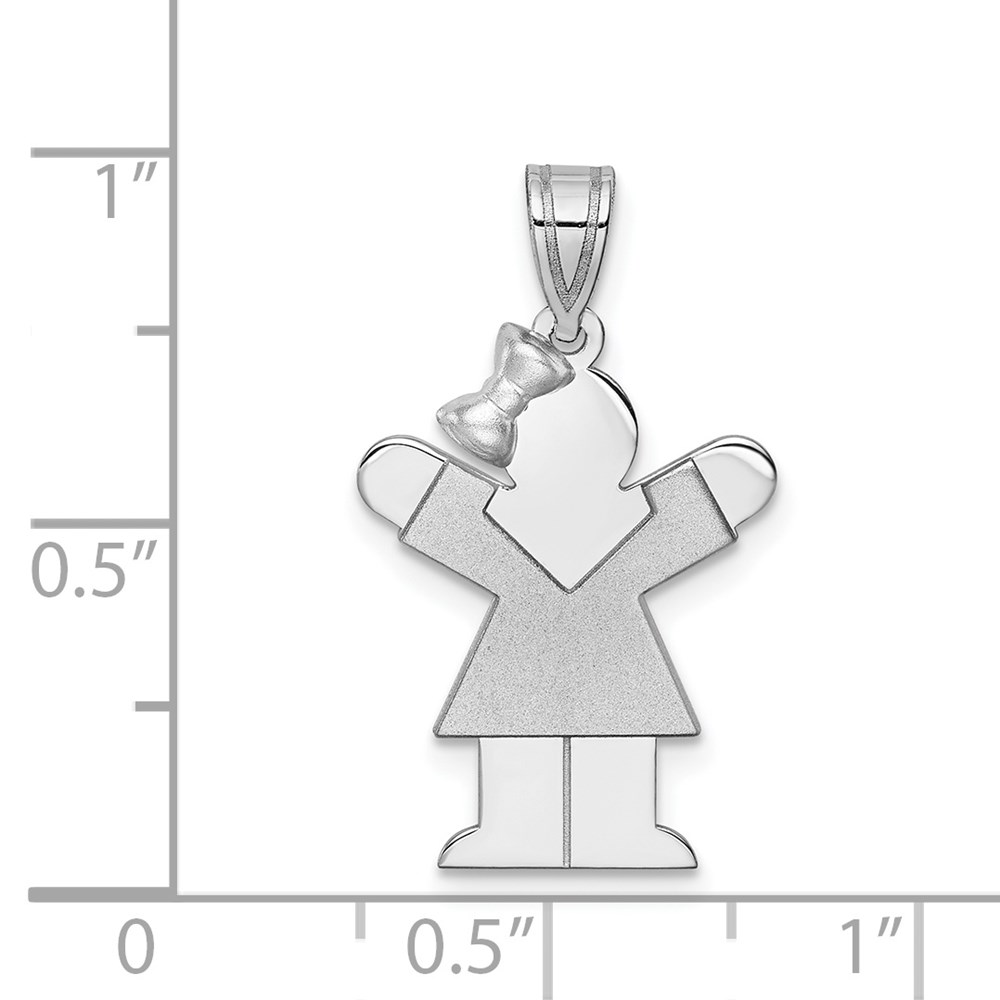 14k White Gold The Kids Small Girl with Bow on Left Engravable Love Charm