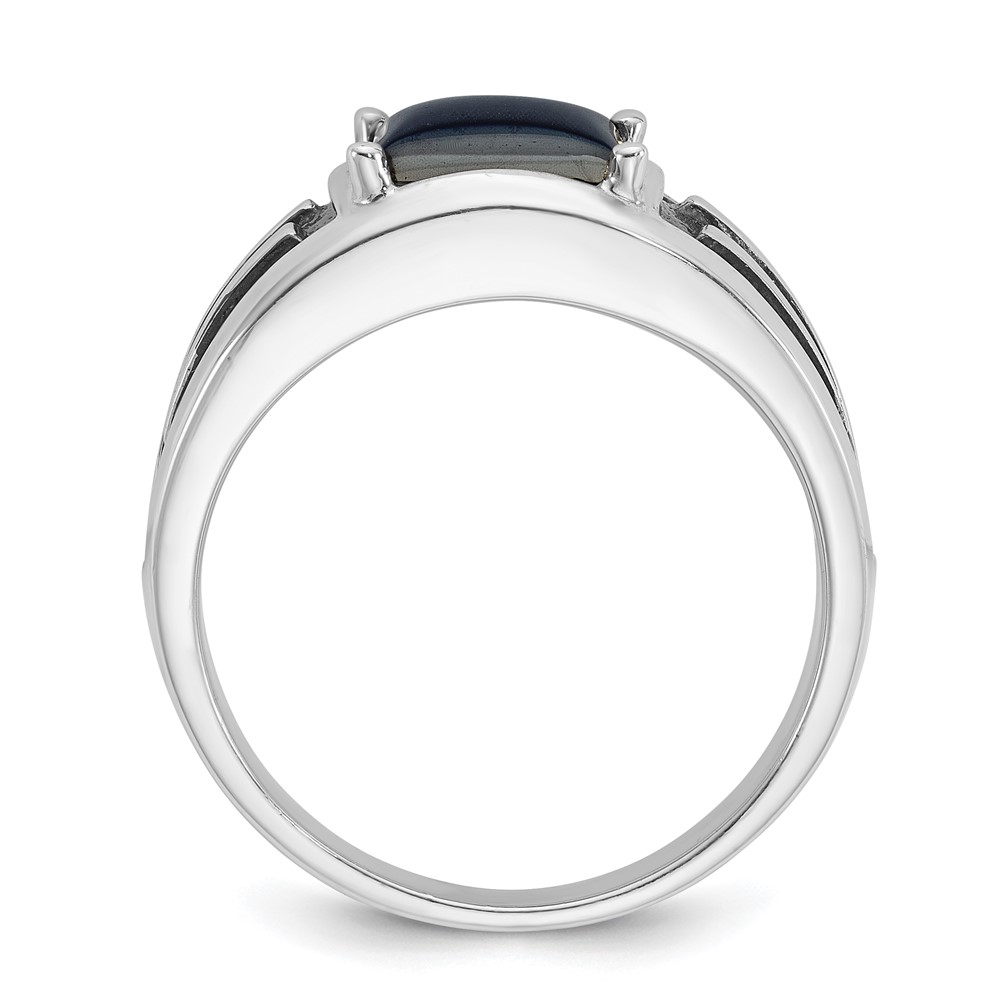 14k White Gold with Black Rhodium IBGoodman Men’s Imitation Gray Cat’s Eye Complete Ring