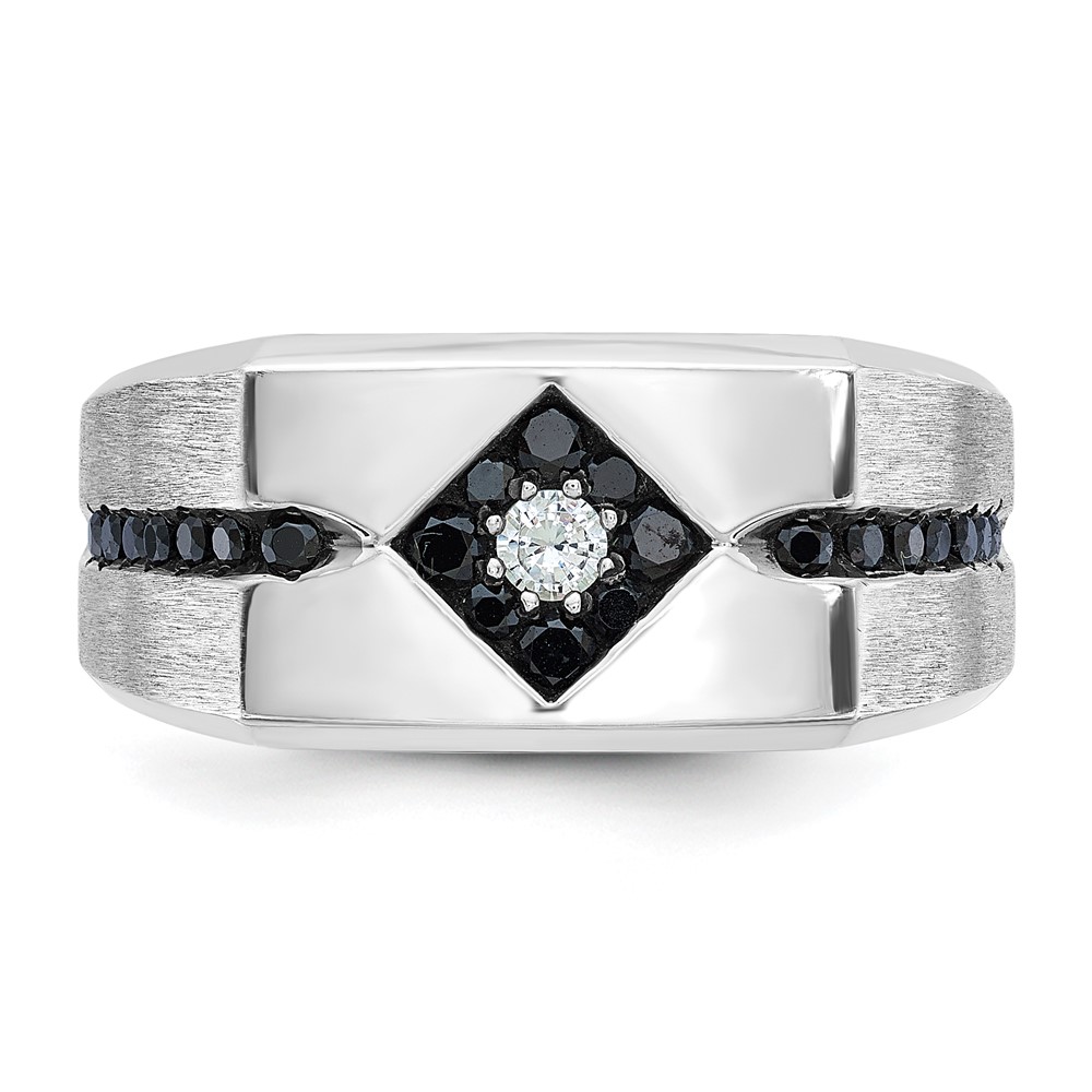 14k White Gold with Black Rhodium IBGoodman Men’s Satin 5/8 carat Black and White Diamond Complete Ring
