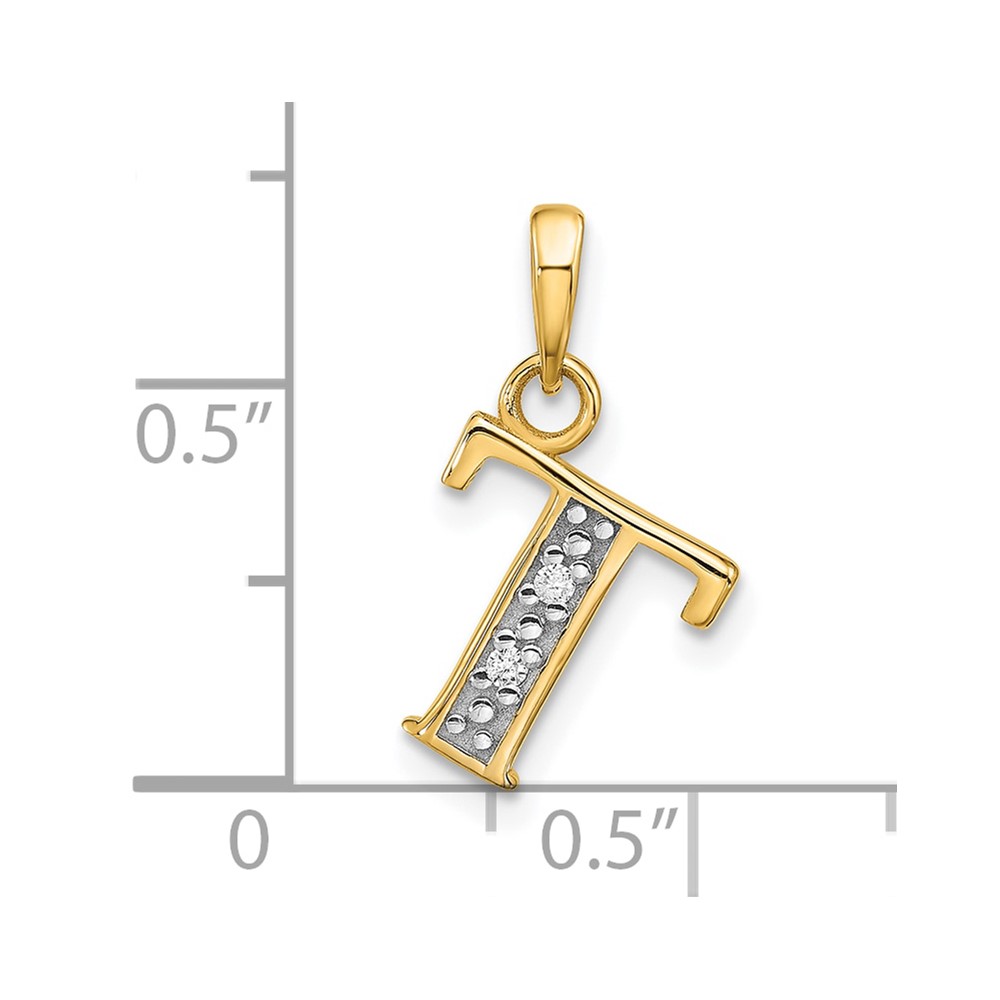 14K with Rhodium Diamond Letter T Initial Pendant