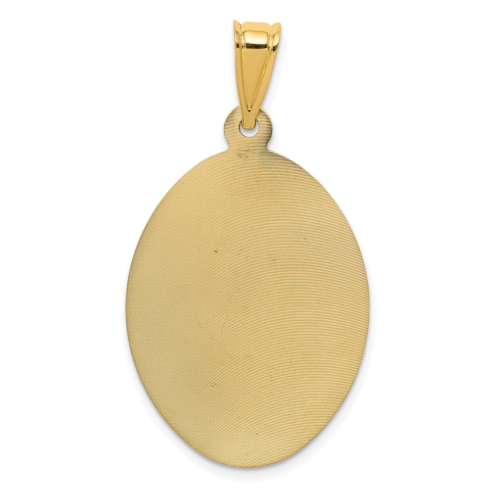14K with Rose and White Rhodium Diamond-cut Solid Large Sagrado Corazon de Jesus Oval Pendant
