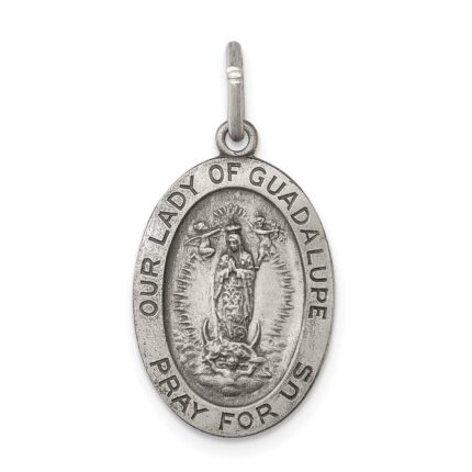 14K with Rose and White Rhodium Polished Diamond-cut Solid Our Lady Of Guadalupe Round Pendant