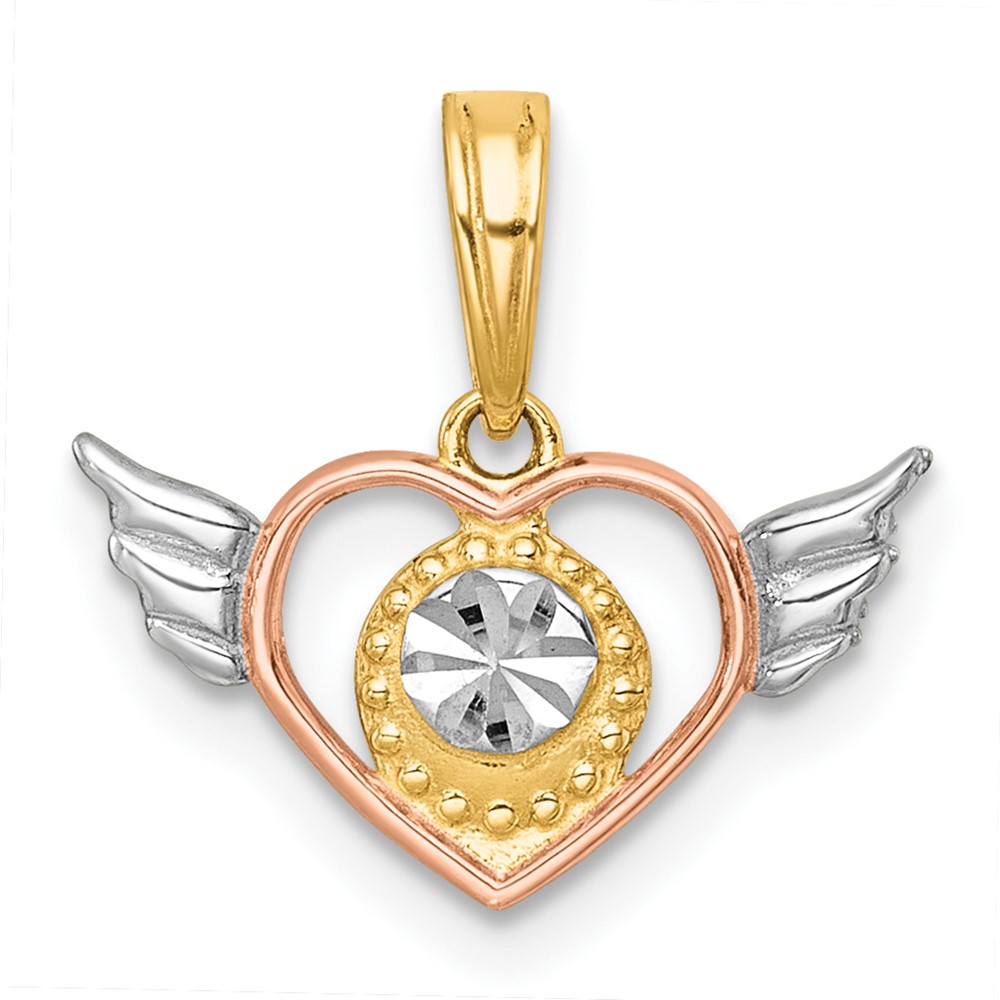 14k with White Rhodium and Rose-tone Heart With Wings Charm