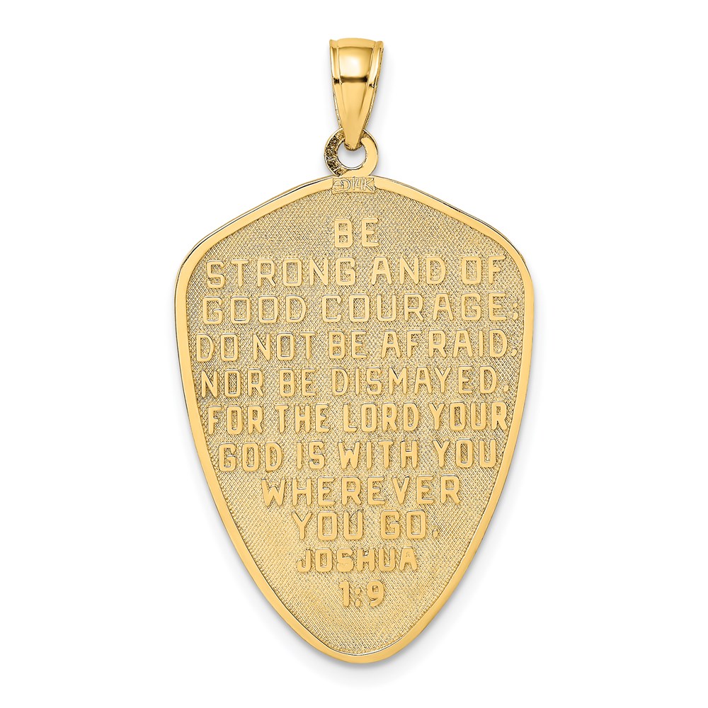 14K with White Rhodium Cross Shield with Joshua 1:9 On Reverse Charm
