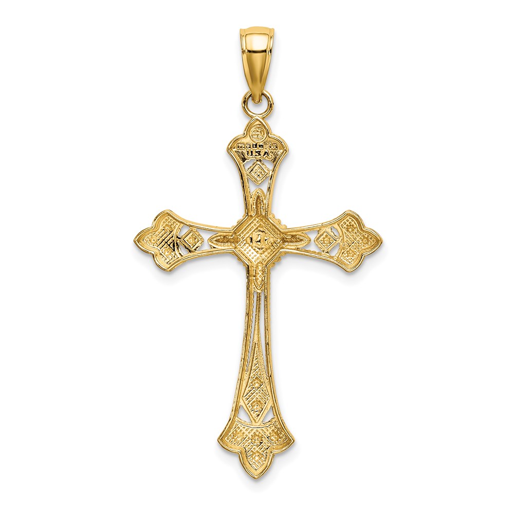14K with White Rhodium Diamond-cut Edges Cross Charm