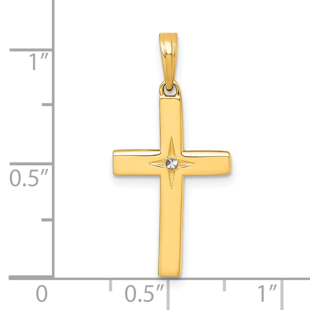 14K with White Rhodium Diamond-cut Latin Cross Pendant