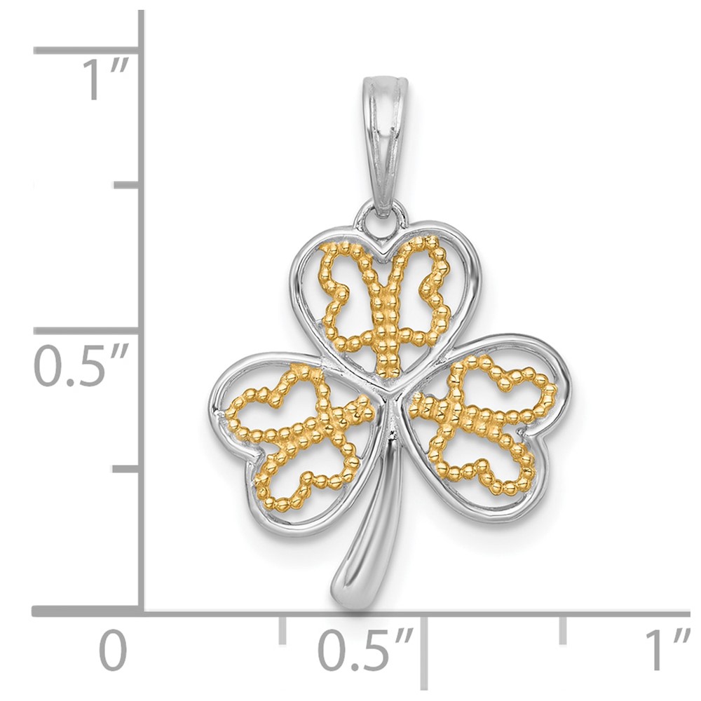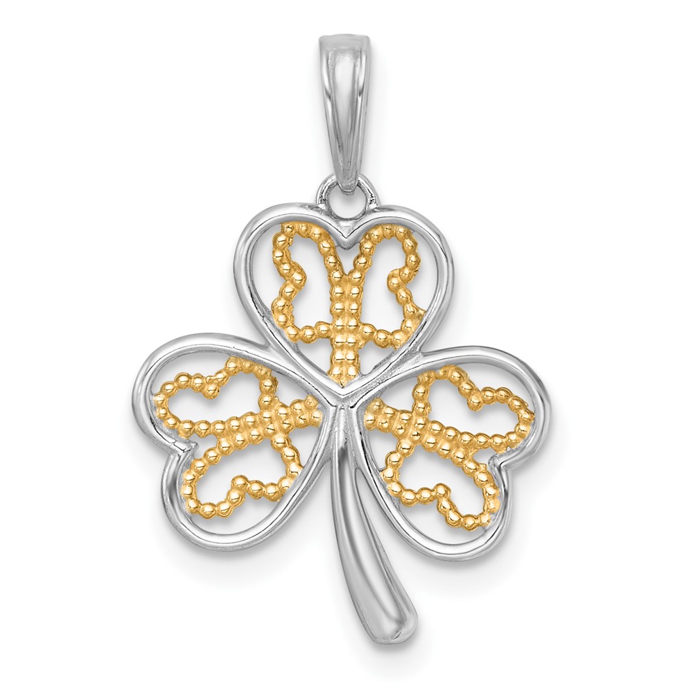 14k with White Rhodium Polished 3-Leaf Clover Charm